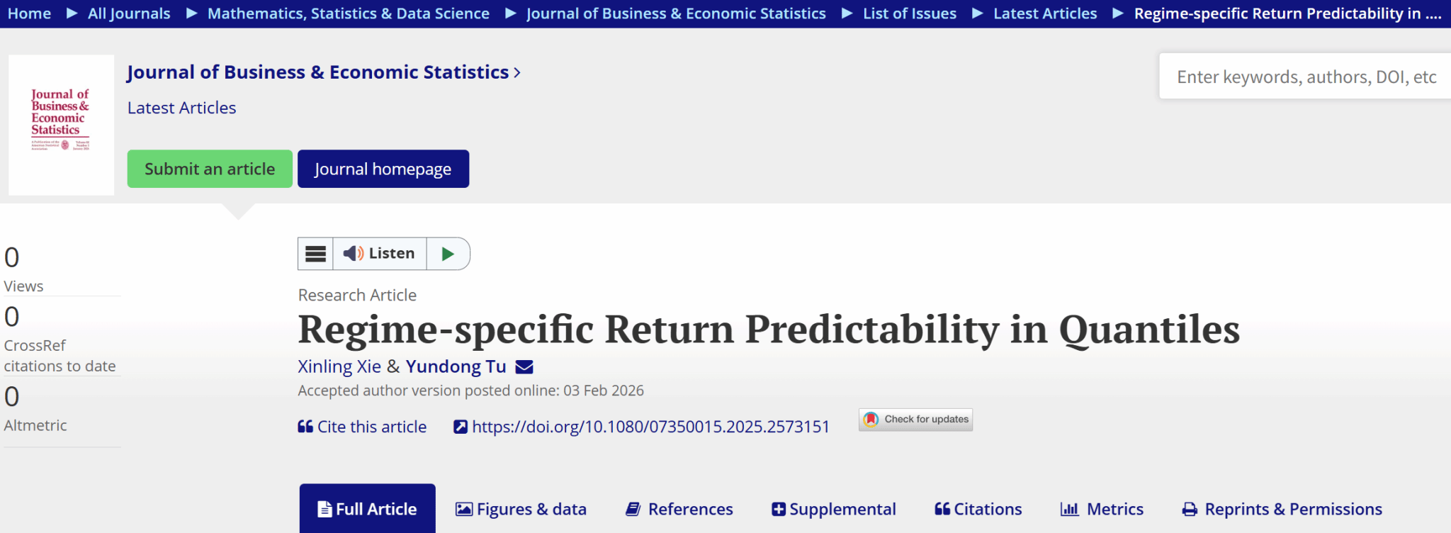 [2026-02-05] 实验室研究成果被《Journal of Business & Economic Statistics》正式接...