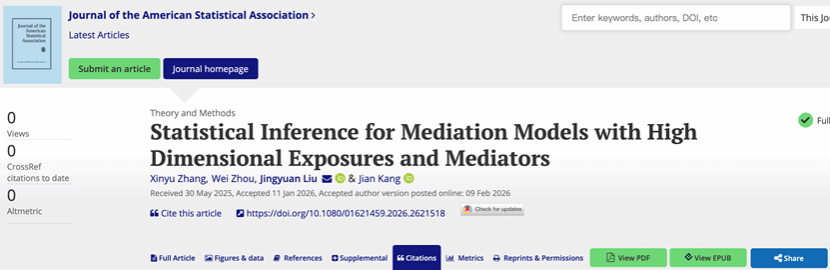 [2026-02-12] 实验室研究成果被《Journal of the American Statistical Association》...