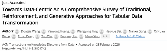 [2026-04-19] 实验室研究成果被《ACM Transactions on Knowledge Discovery from Data...