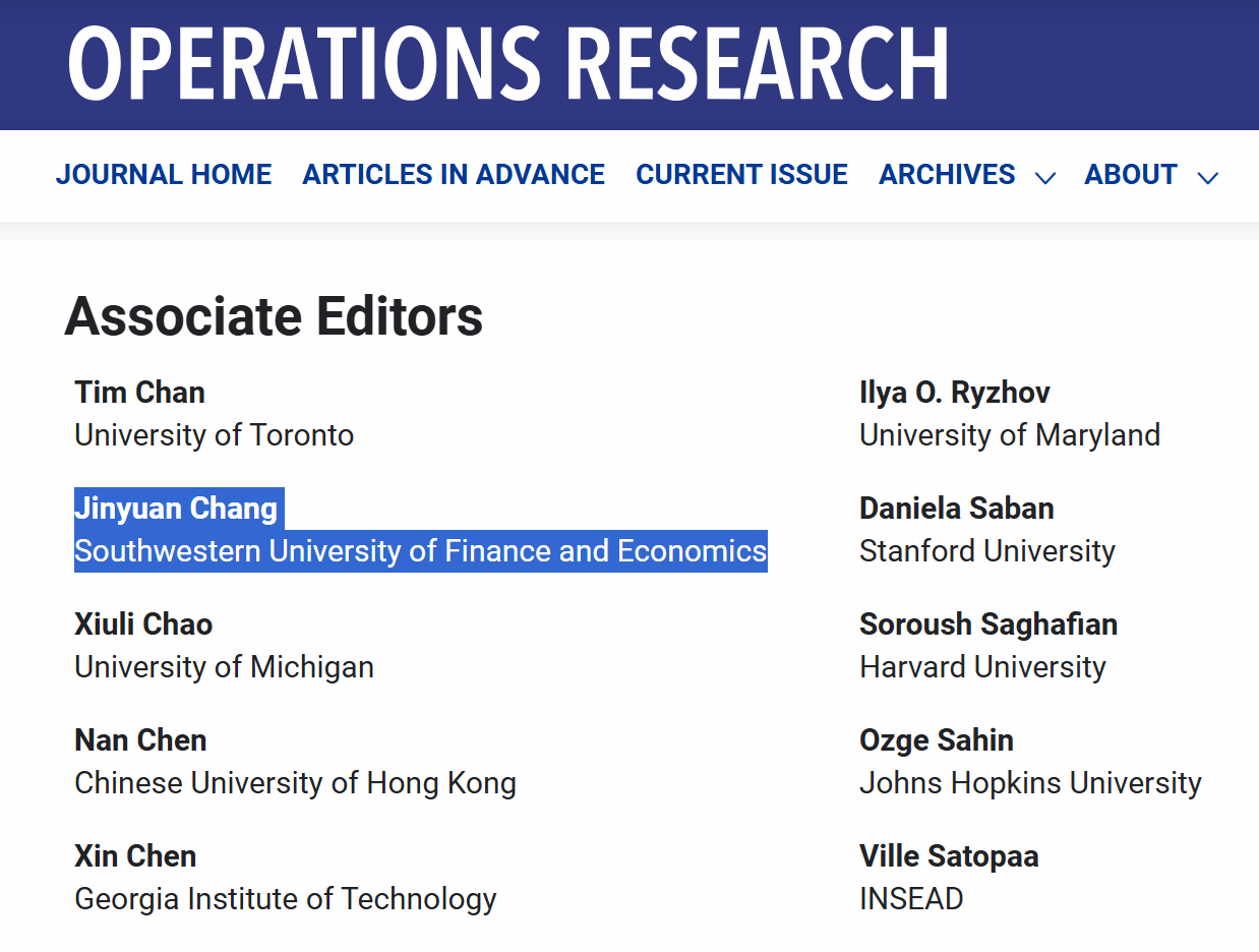 实验室常晋源教授担任国际顶级期刊《Operations Research》副主编