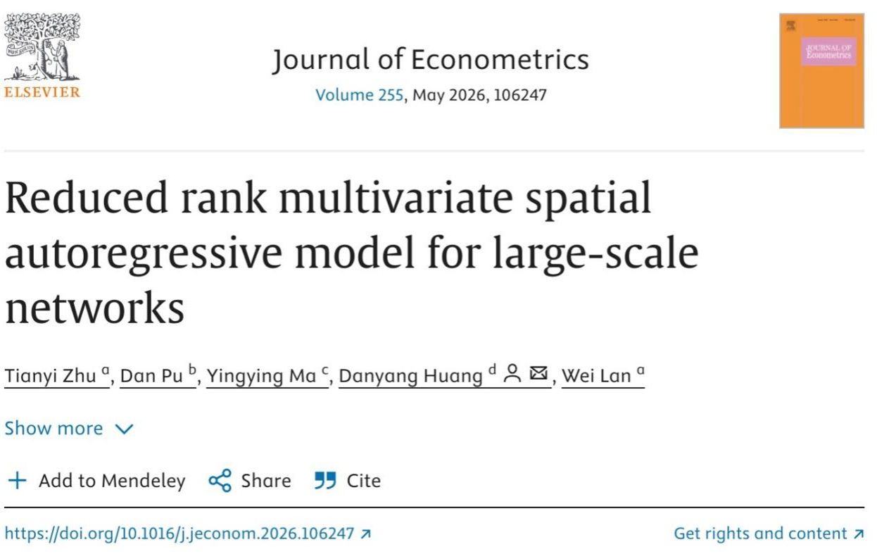 [2026-04-23] 实验室研究成果被《Journal of Econometrics》正式接收